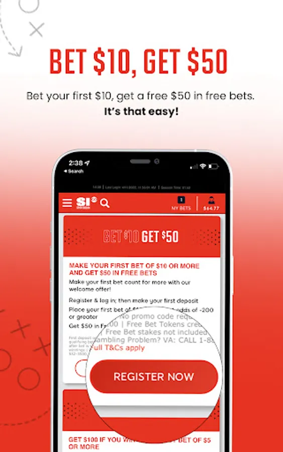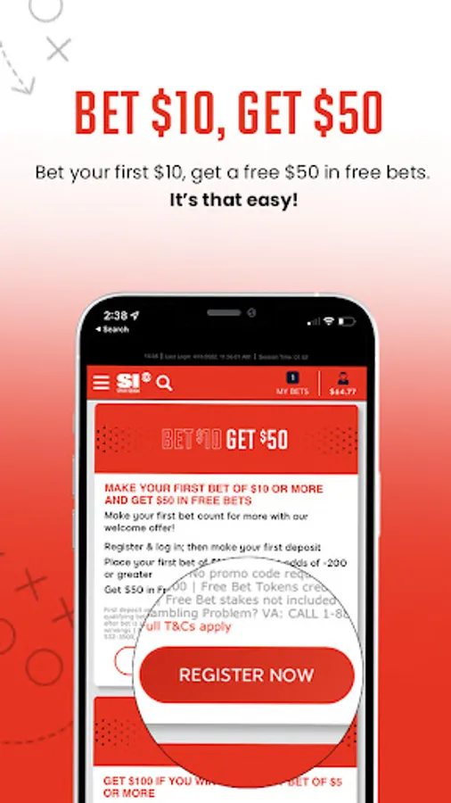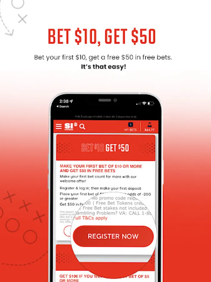 First deposit only in VA or CO• 21+ • Min deposit of $10 • A qualifying wager is a ‘real money’ stake of at least $10 • Min odds -200 • Free Bets credited upon qualifying wager settlement and expire after 7 days • Free Bet stakes not included in returns • Restrictions apply to withdrawals and payment methods • Full T&Cs apply (https://www.sisportsbook.com/promotions)