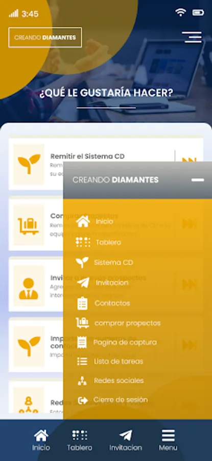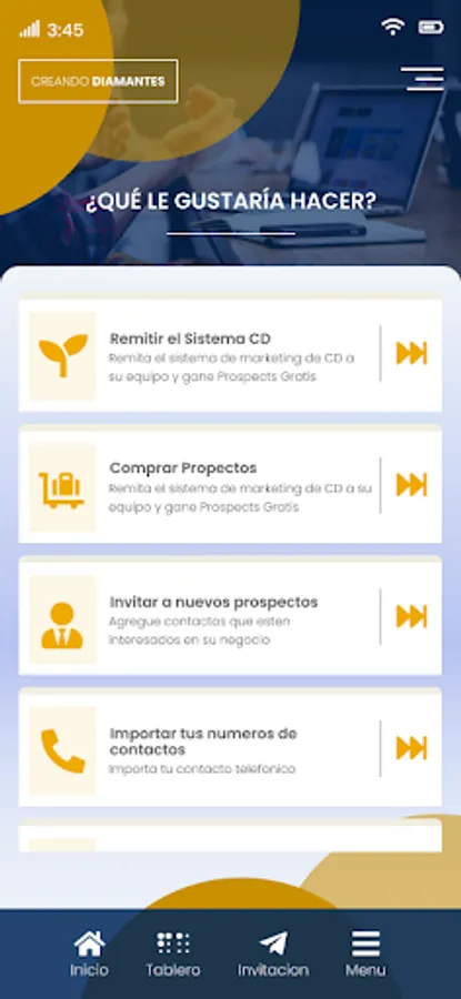 The app has been developed exclusively for team members to allow them to reach out to new prospects and share content on social marketing platforms. The process initiates an automated sequence of personalized messages in email, SMS and WhatsApp. Users can track and interact with their prospects while receiving notifications when a contact becomes a "hot" prospect. Other functions include the ability to organize online parties and manage daily tasks