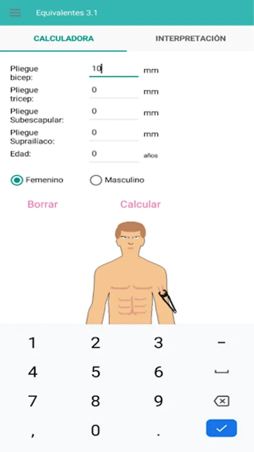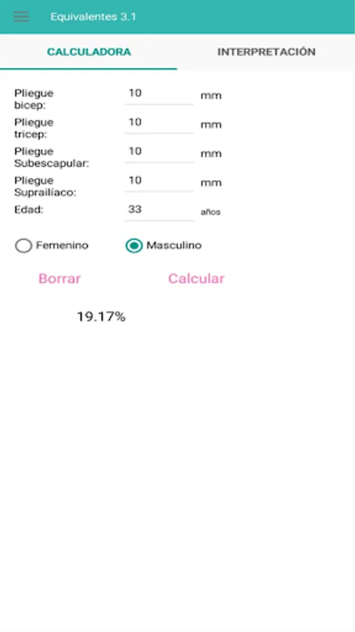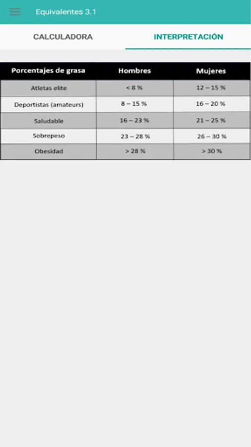 It also includes an I.M.C. calculator. Y% of Body Fat
