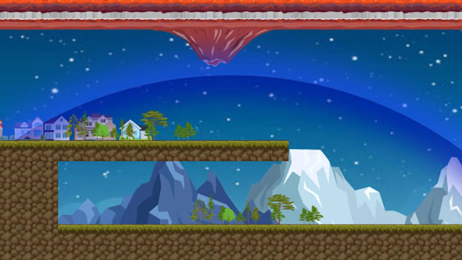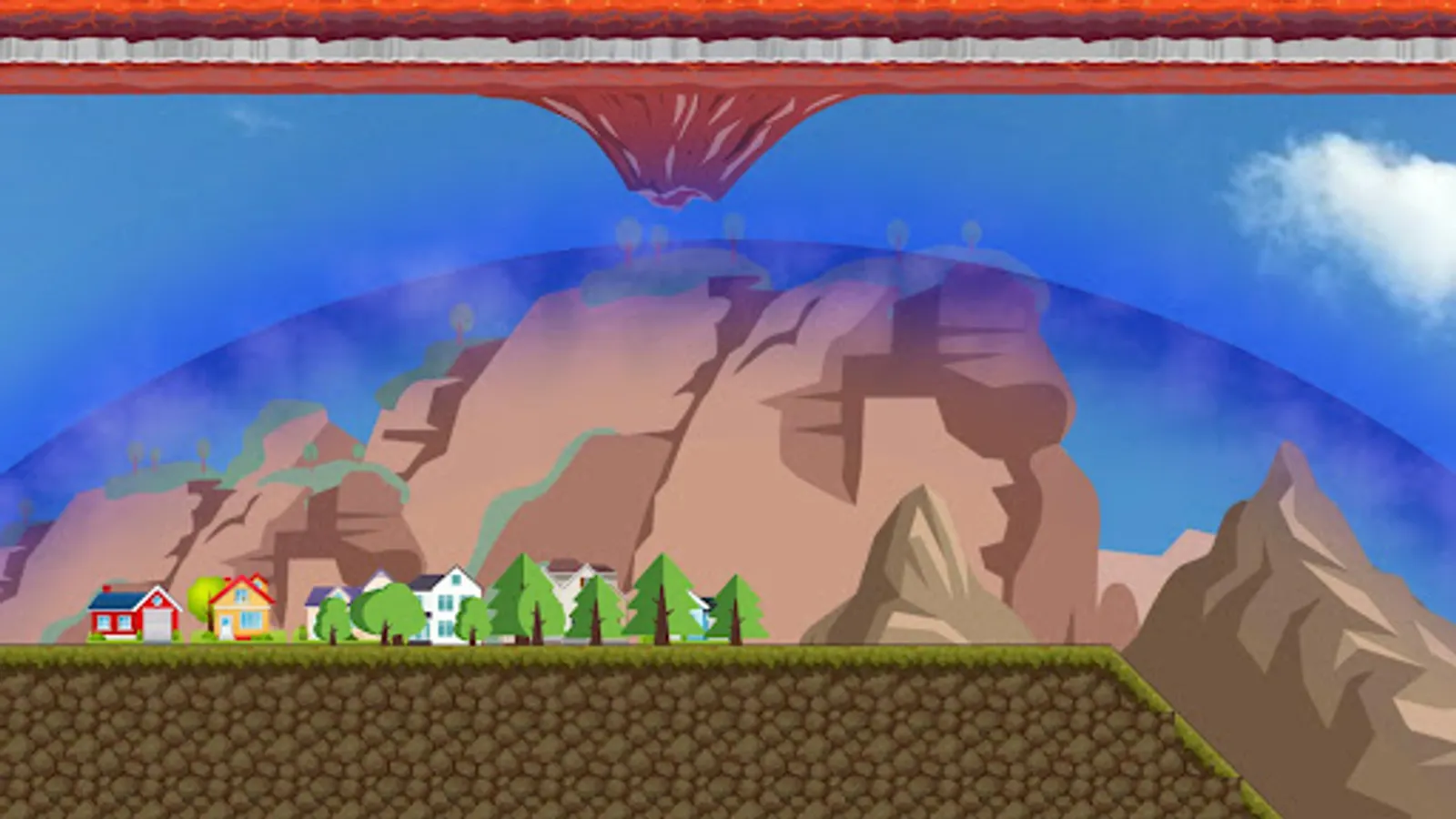 Another seemingly normal day. Residents wake up happily, opening their eyes in the morning, stretching and getting ready for another day. When you leave the house, there they are, the volcanoes suspended upside down, displaying their volcanic craters like big inverted smiles. It's like saying, "Hello, locals! We're here to brighten up your day!" With passers-by used to having upside-down volcanoes on top of them, everything seemed to be under control. After all, villages were protected by reliable force fields... until fate decided to play with logic!