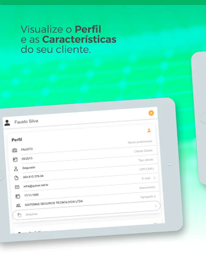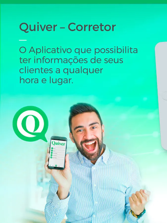Quiver - Broker is an application that makes available in a quick, simple and intuitive way, the main information of its clients. It is the exclusive solution that leaves the broker at ease, having information at their fingertips anytime, anywhere via smartphone.