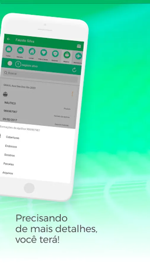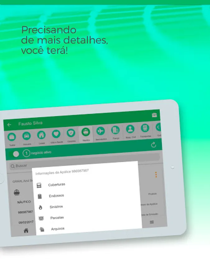 Active and inactive Documents Filter, in order to maintain a history of the client's documents; installments paid, scheduled and overdue, claims in progress and completed; Information on the endorsements made; Write-off of Files (Single and Linked): Files corresponding or not to a Policy.