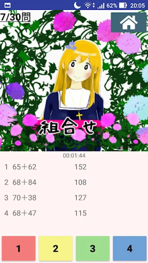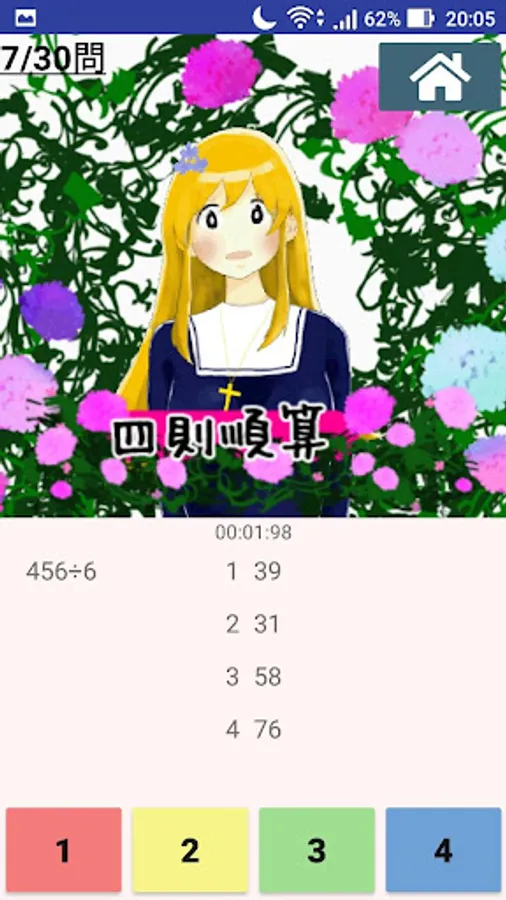 四則演算と四則逆計算、組み合わせの3パターンについて選択早押し、タイムアタック機能を搭載しています。