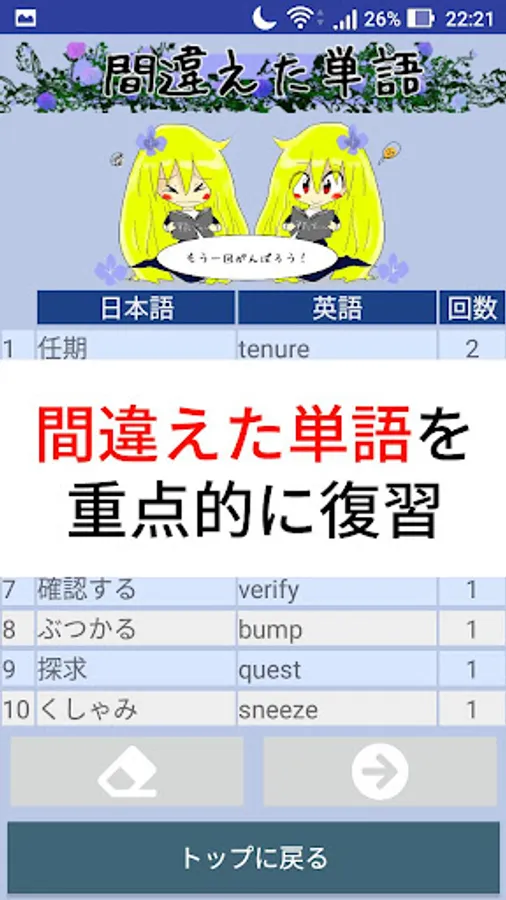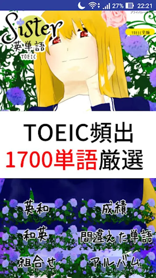 An English word learning app for those who aim for a TOEIC score of 600. The strongest method to memorize thoroughly by narrowing down the essential words that are a little difficult.