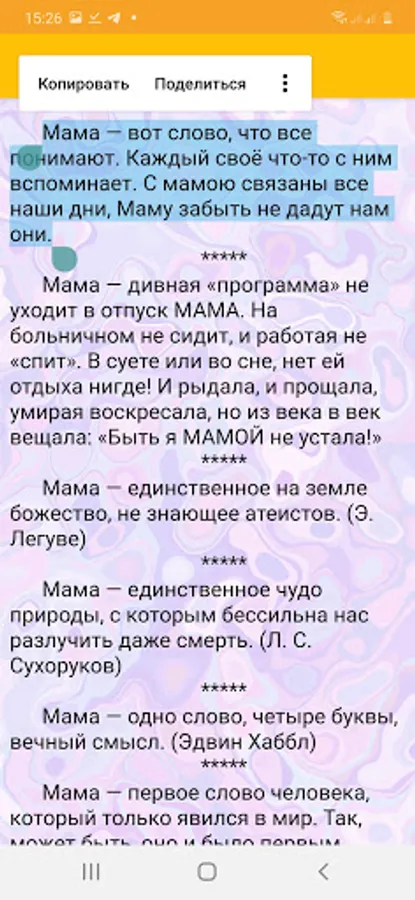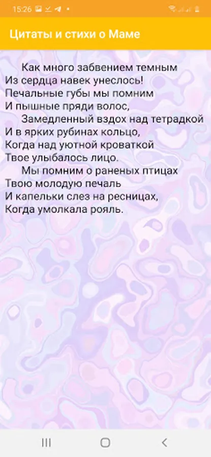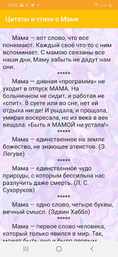 This application contains Quotes and poems about mom in categories of more than 200 quotes and 20 verses