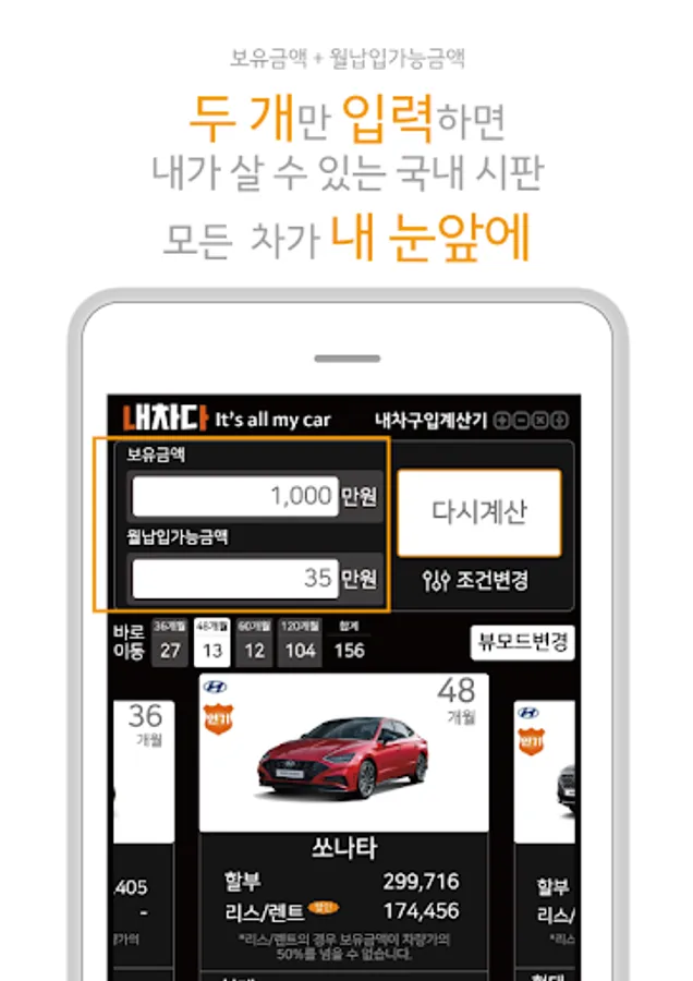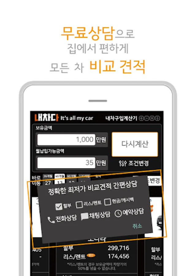 ‘내차다’의 내차구입계산기로 한방에 다 찾아드립니다.