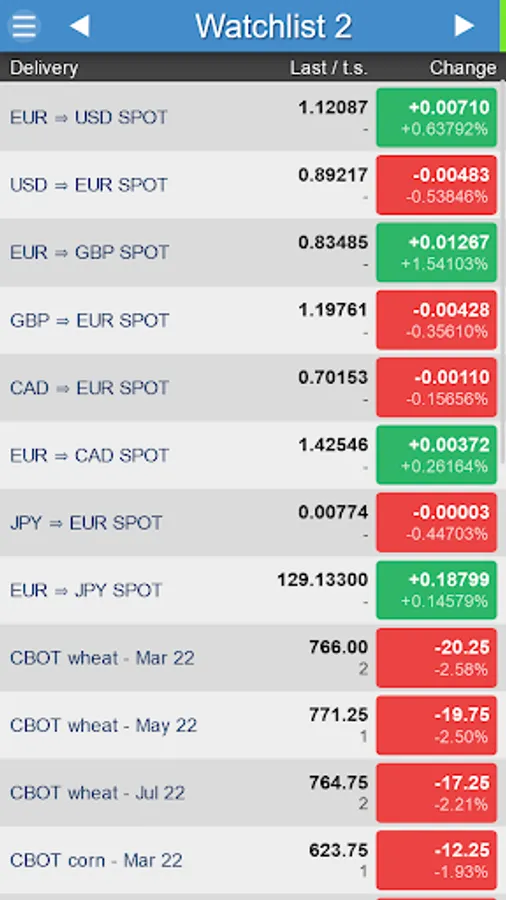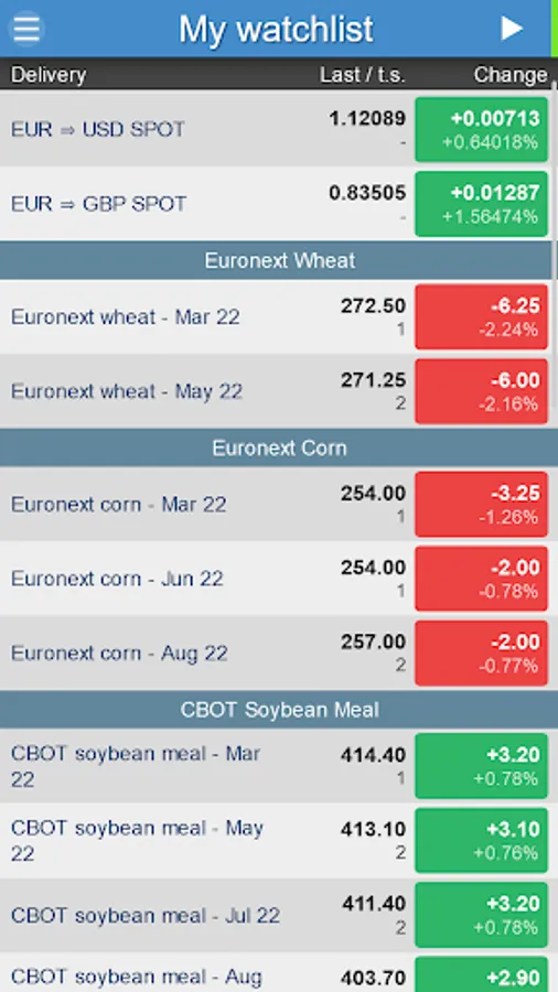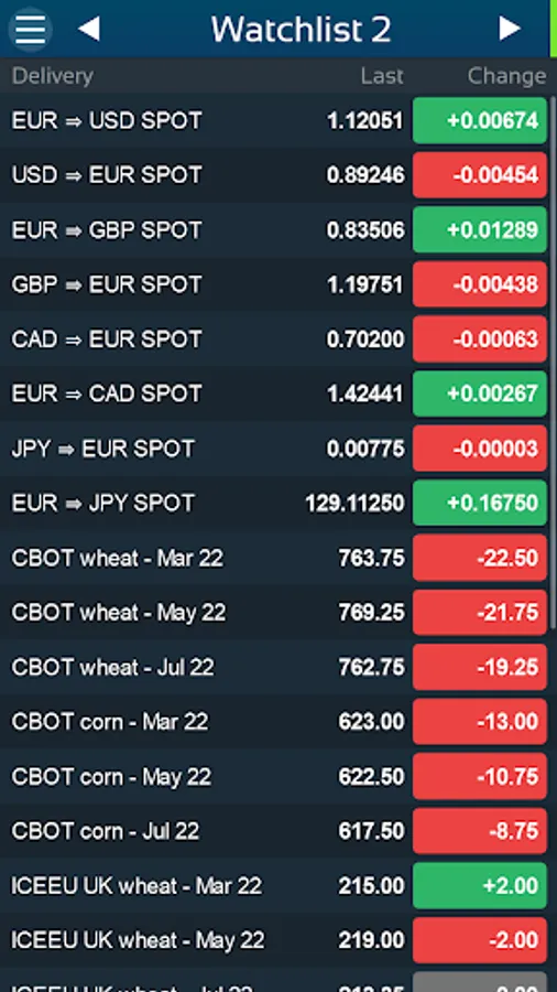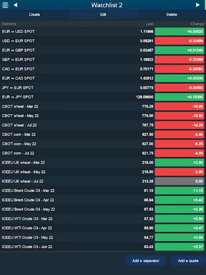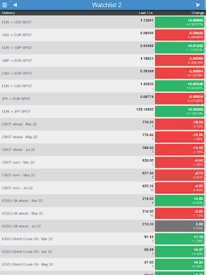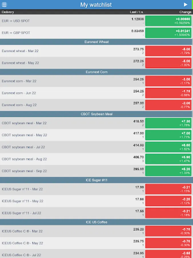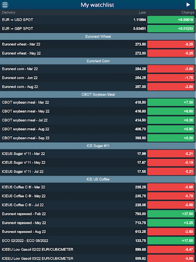 - Real-time streaming quotes (Euronext, CBOT, ICE EUROPE, ICE US, ICE Canada, KCBT, Forex)