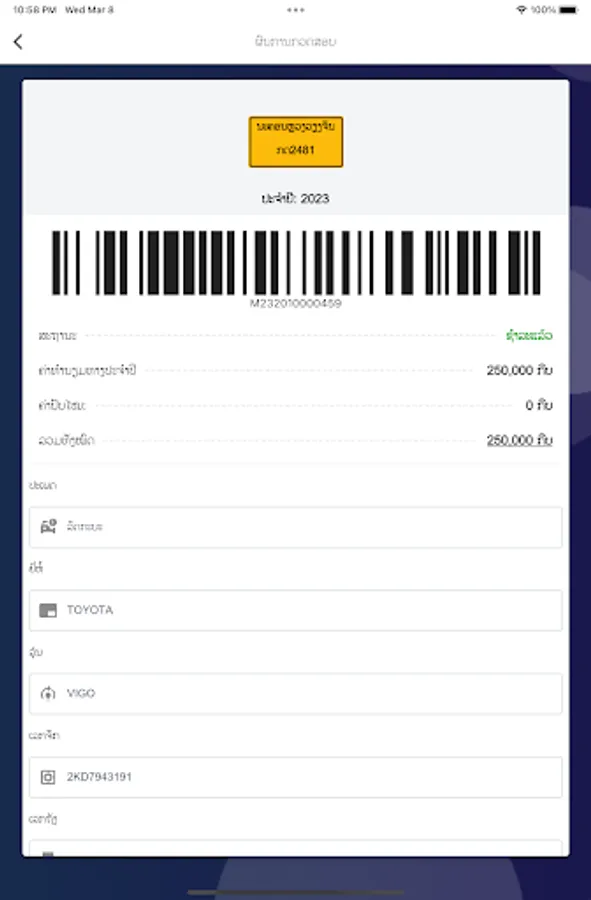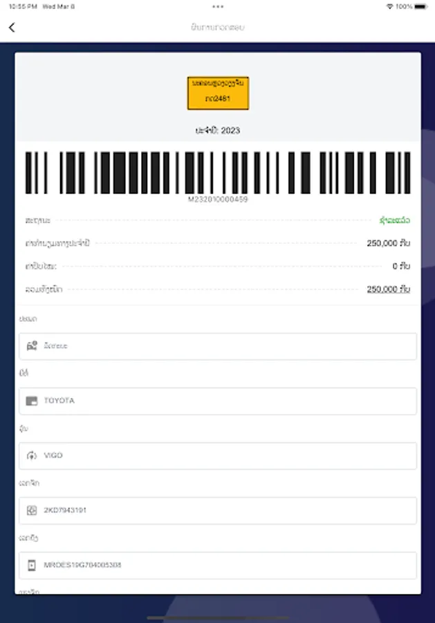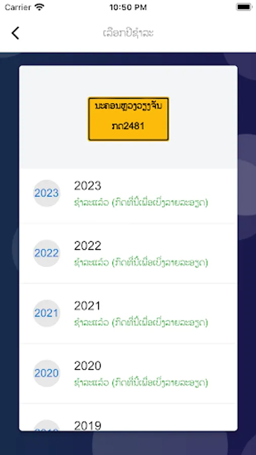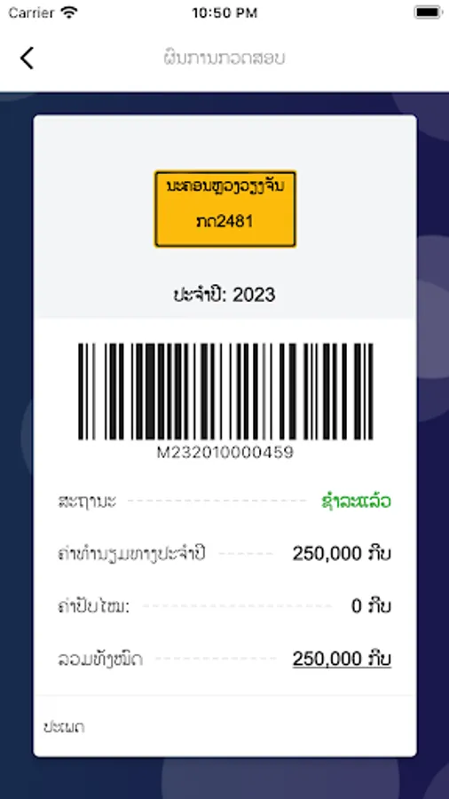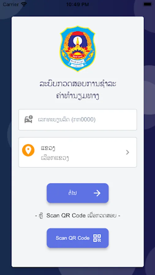 The app for vehicle owner in Lao PDR to verify if the annual road tax payment status is valid and successful or not