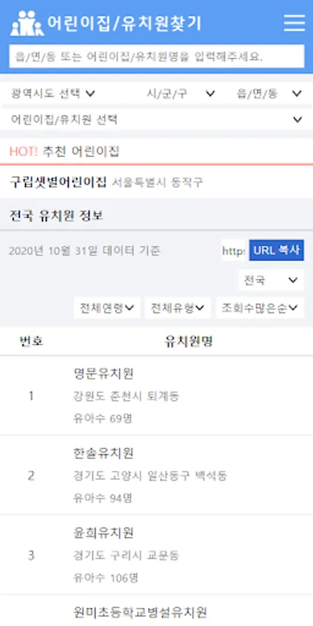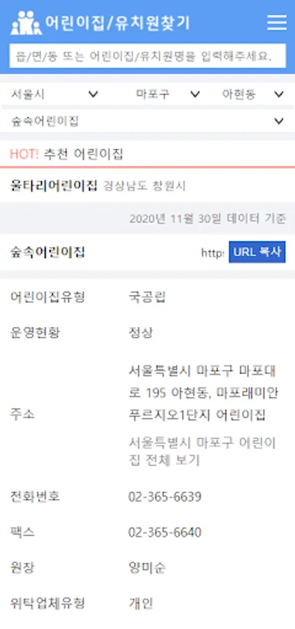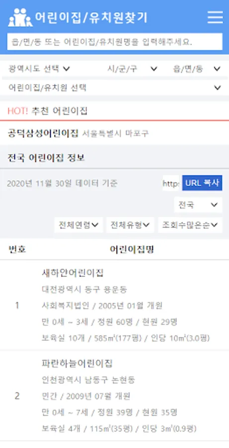 Day-care center/kindergarten type Opening date Phone number Address Number of faculty and staff Capacity Number of nursery rooms in the prefecture Nursery area Nursery room area Provides information on transportation vehicles