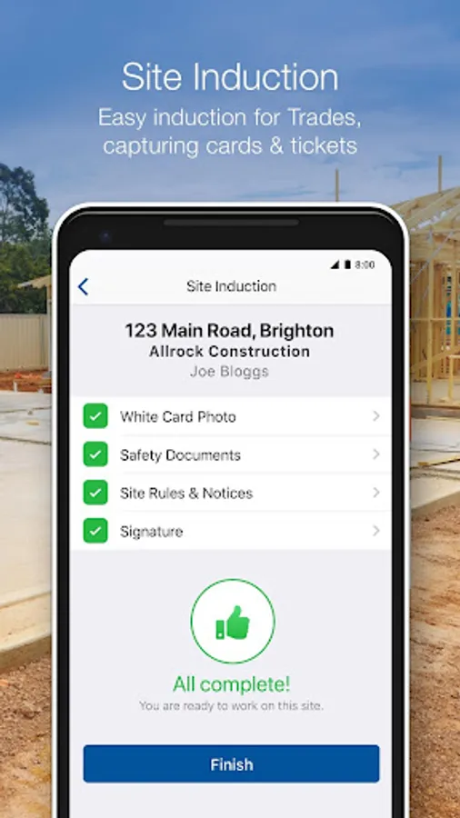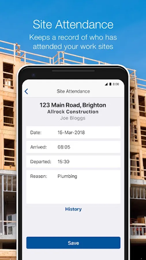 Tradies arriving at a construction site can download the App, enter the "Site Code", and then complete their site induction.