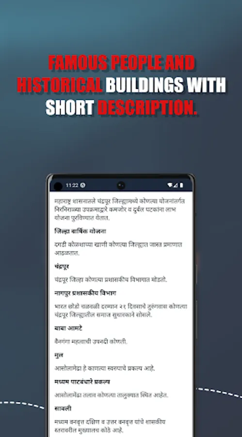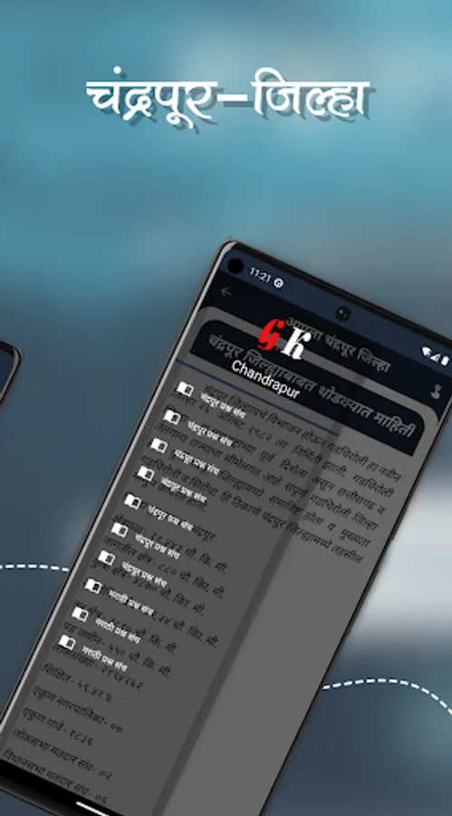 कोणत्याही चंद्रपूर जिल्हा परीक्षेची तयारी करणाऱ्या विद्यार्थ्यांसाठी हे App एक उत्तम साधन आहे. चंद्रपूर जिल्ह्याच्या सामान्य ज्ञानासाठी मराठीत Android Application.