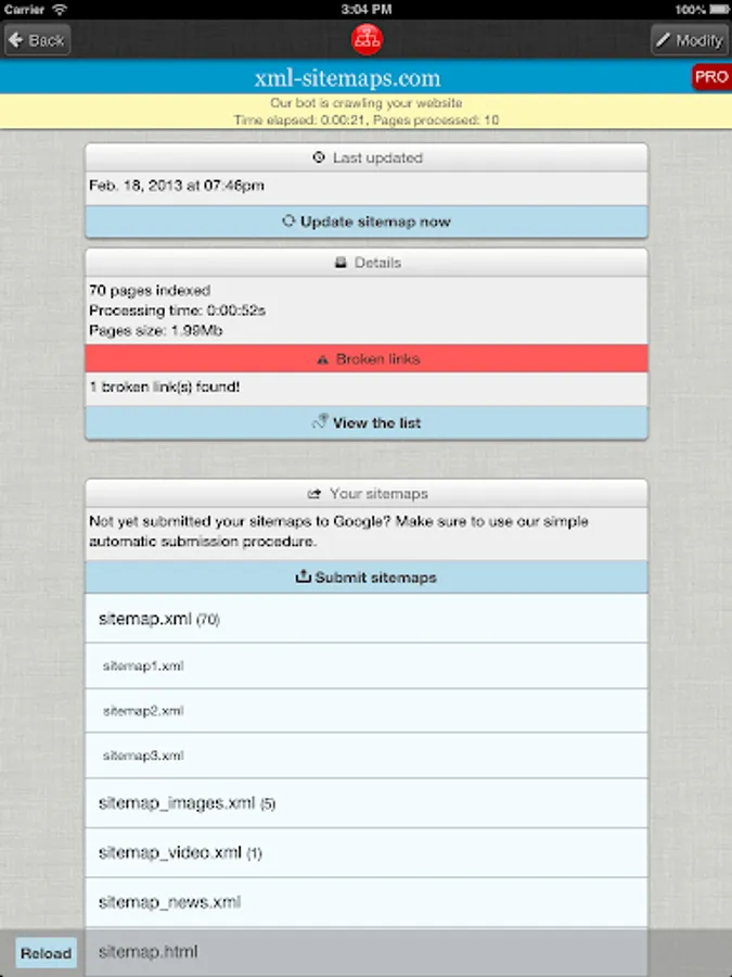 A quick and easy solution to professionally create and manage sitemaps for your website(s). The app will connect you with pro-sitemaps.com service and setup your sitemap in minutes.