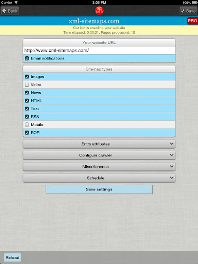 * We will create XML sitemap for you from our server and optionally will keep it up-to-date