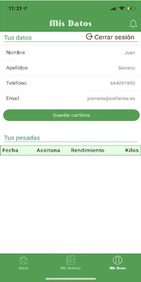 It is an APP developed so that at all times you can check the kilos that weigh your daily harvest, sending you notices of when the truck unloads the harvest in your cooperative.