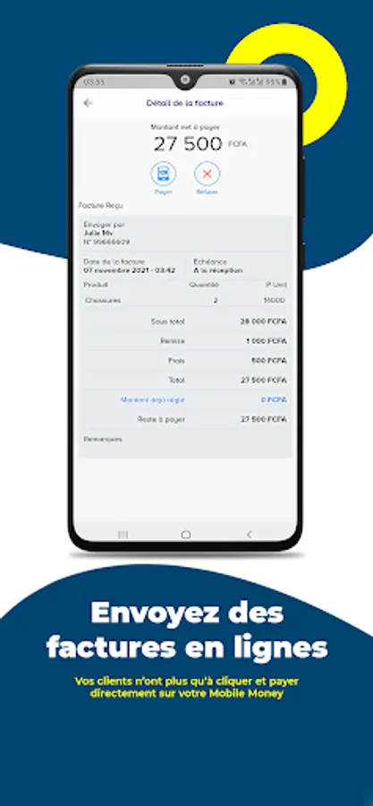 - Your customers can pay directly in 2 clicks and collect directly from your mobile money account with payment monitoring and management.