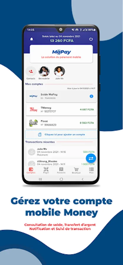 MaPay allows you to send or receive payments and make simple and secure money transfers from your mobile money account in Togo (TMoney and Flooz) and soon in Africa.