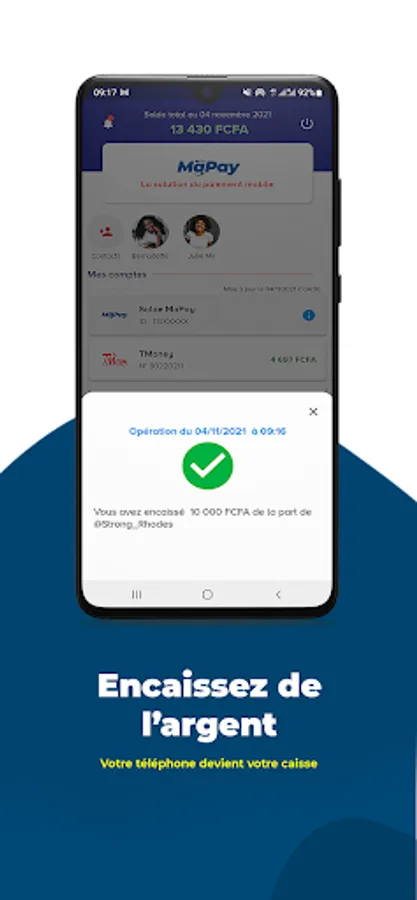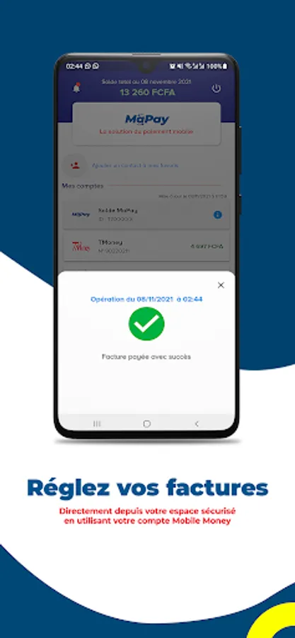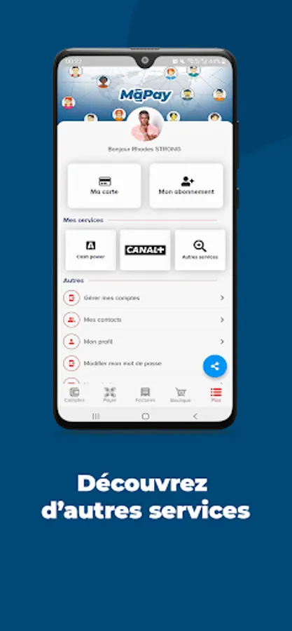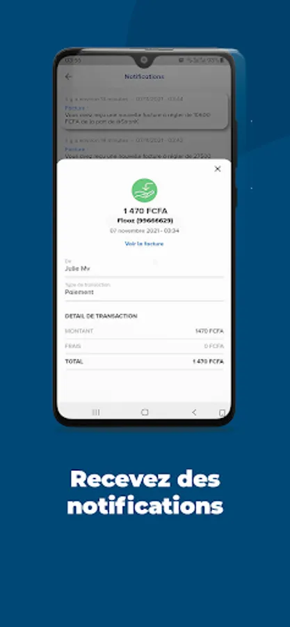 Our application also offers you the possibility to easily pay for your subscriptions and services offered by telephone operators. No more USSD codes, Choose your service (Canal +, CanalBox, Cash Power, TDE invoices, CEET, etc ...) and validate your payment.