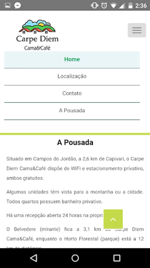 Carpe Diem bed and breakfast is a guesthouse located in Campos do Jordao. Located 2.6 km from the tourist center of Campos, a village Capivari. Currently owned seven (7) suites very well prepared to provide maximum comfort to our guests.
