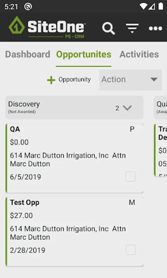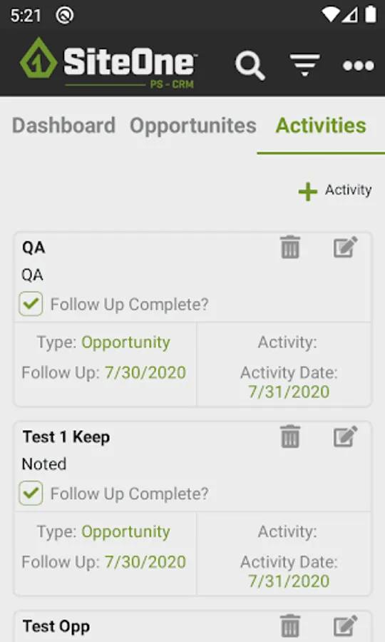 SiteOne CRM Screenshots