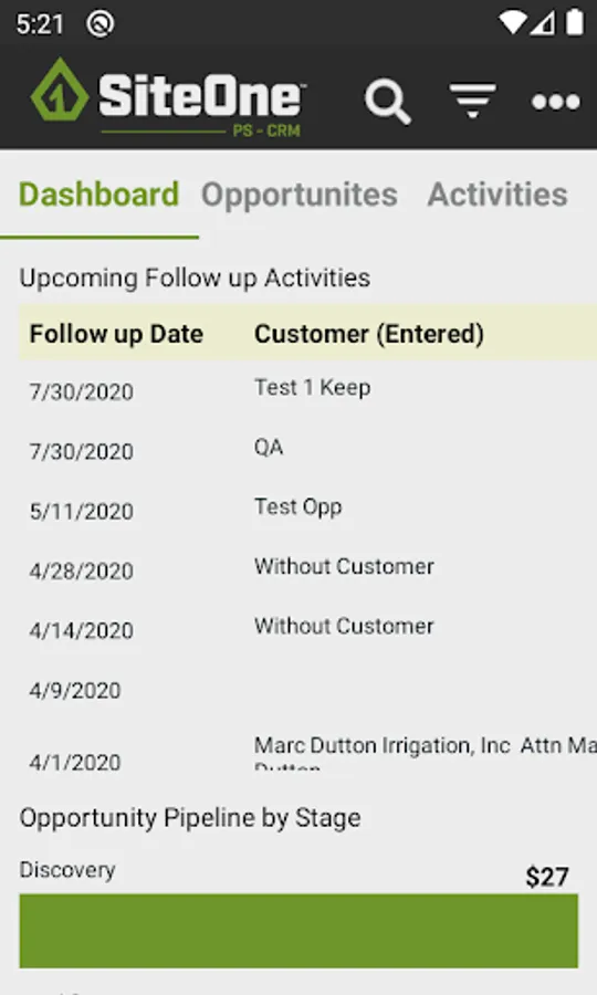 SiteOne Mobile CRM that helps sellers and to keep track of all project and marketing share opportunities and pipeline for sales goals.