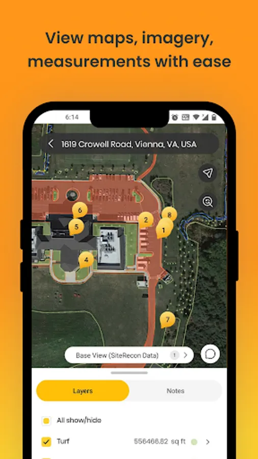 Document site information on the maps and access it anytime, anywhere with your mobile device. Create notes about site conditions, enhancement opportunities, or service issues and make them more insightful by adding images and videos. Tag your teammates in the notes and communicate seamlessly on the maps. Export detailed reports as soon as you complete a site walk and share with your clients. Access SiteRecon takeoffs for free - on the go!