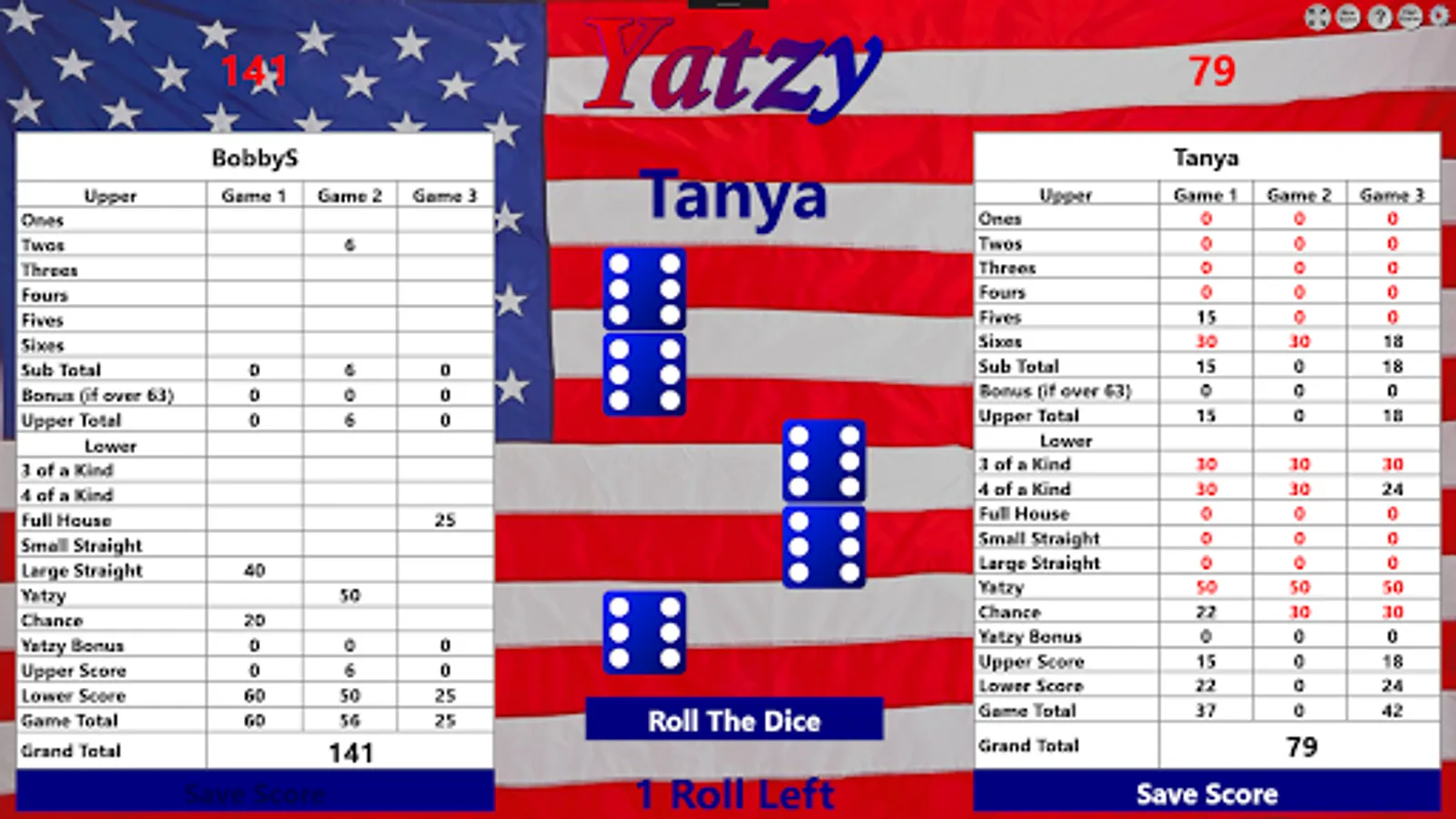 Either one or two players can play this dice game. One, two, or three games can be played at the same time in Yatzy Multi-Game Edition. First, decide how many simultaneous games to play. Then, if there is more than one player, decide who is going first.