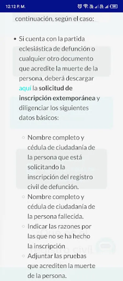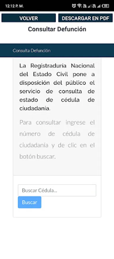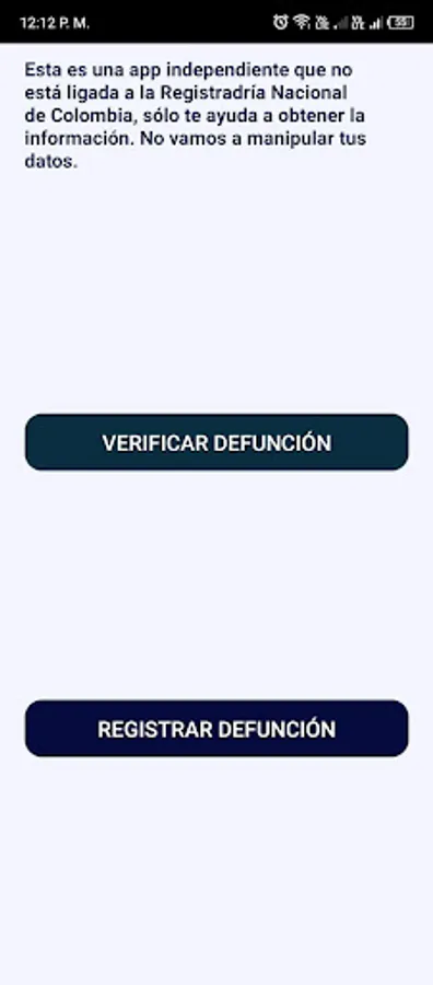 With this app you will be able to check the status of the Death Registry of a person in Colombia, you will be able to check if it appears as alive or deceased.