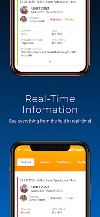 Get 360 degrees of visibility over your Plant & People. View & upload all documents, maintenance and actions associated with Plant. View and resolve PreStarts in real-time. Customise notifications. Track Plant in the field. View all worker documents and receive Plant Dockets, Timesheets and more.