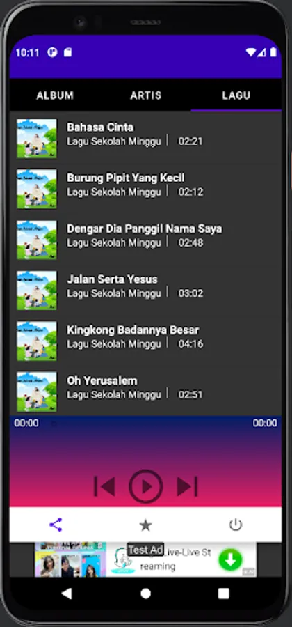 Lagu-lagu dalam aplikasi ini dipersembahkan untuk anak-anak dan pengajar Sekolah Minggu.