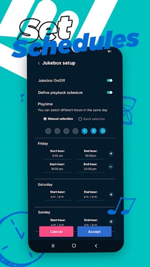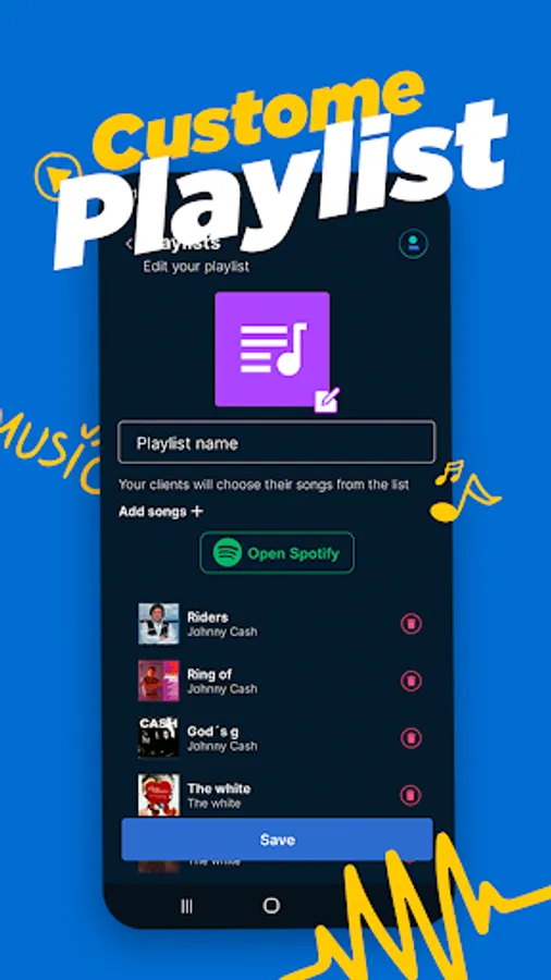 Designed to decentralize the responsibility of choosing the musical environment, automate the process, improve the experience, and promote customer interaction.