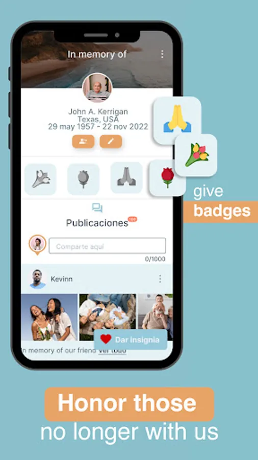 ● Create an Eden to a person and invite your loved ones to share their memories and gift badges.