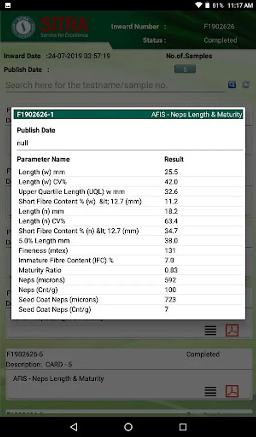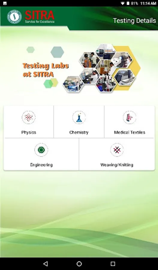SITRA’s Testing Mobile App which provides customers an easy and secure way to access their test results from any android mobile device. Using this interactive app, users can track the status of samples sent for testing in various laboratories of SITRA, view the published results of tested samples, download machine printout pdfs wherever applicable, receive announcements & obtain the most up-to-date information about advance & pending details