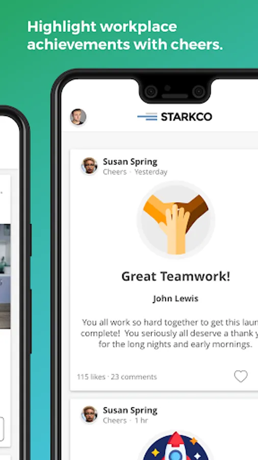 • Stay connected to coworkers with cheers, posts, likes and comments.