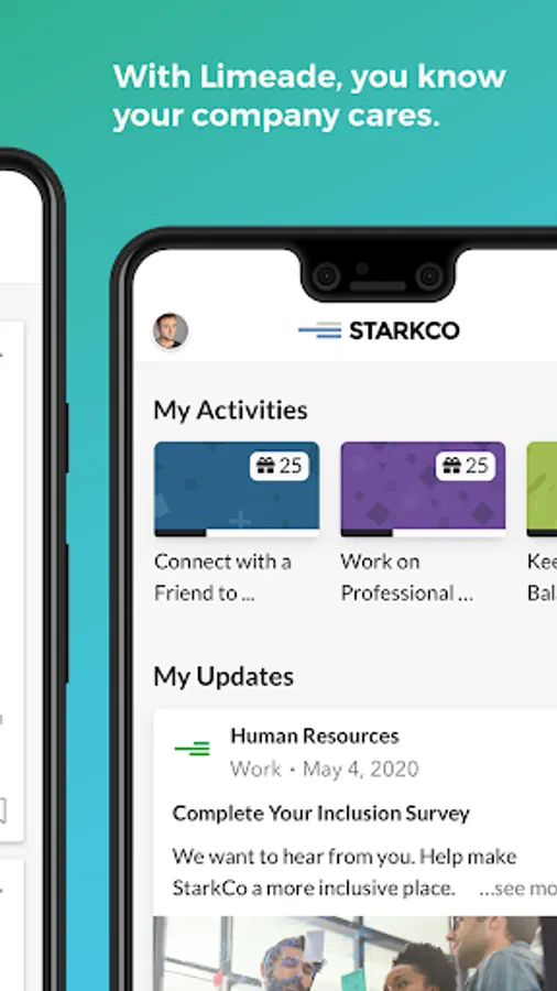 With Limeade, you know your company cares. Use the Limeade ONE app daily to participate in activities, get company communications, access resources and connect with your coworkers. Content will vary based on your employer and organization. A great employee experience starts here.