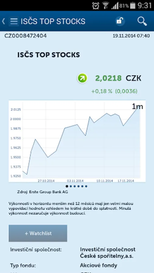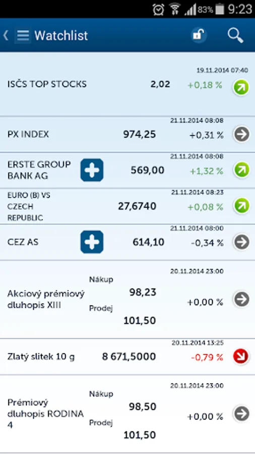The Investment Centre application from Česká spořitelna offers free access to information from the world of investments.
