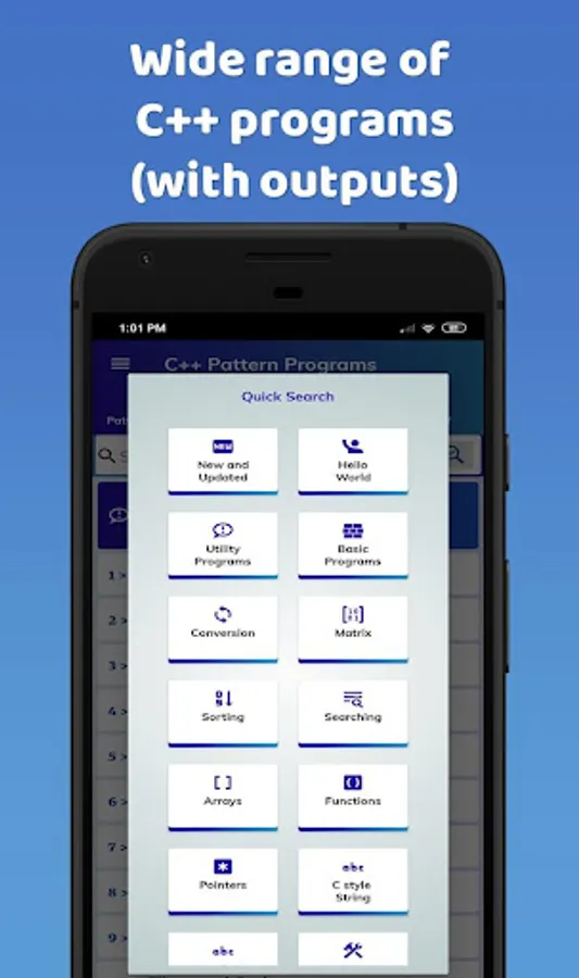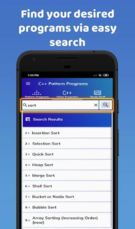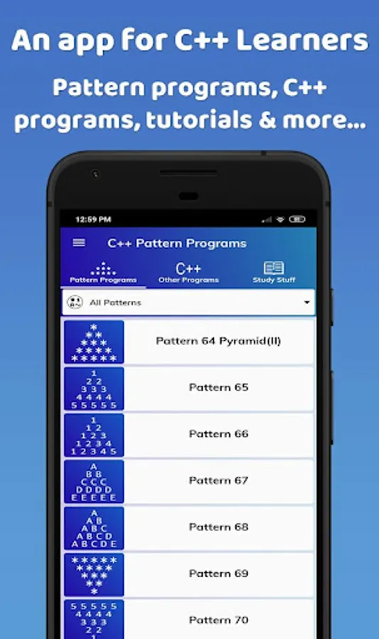 This app is full of pattern and other C++ programs. In addition to this, there is a lot of study stuff related to C++ programming as well.