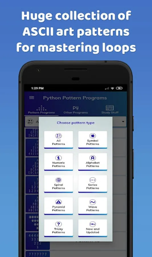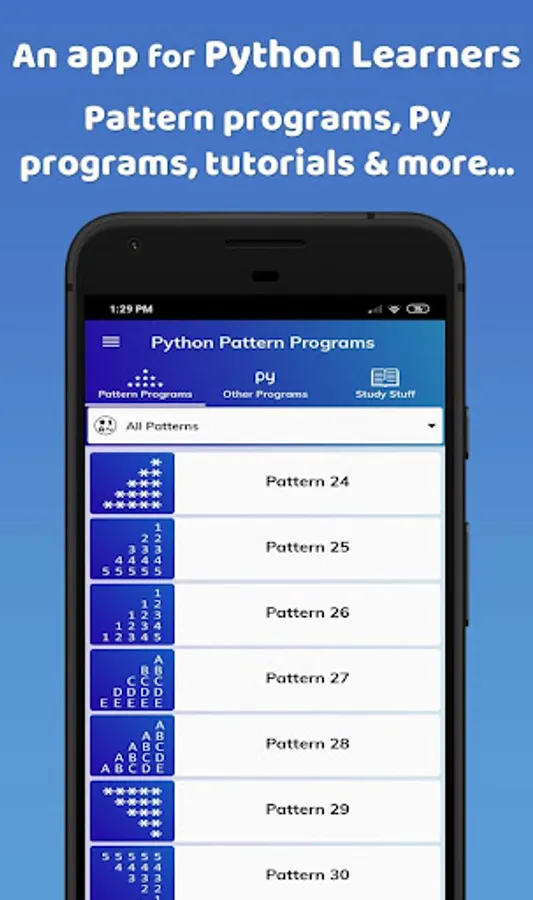 Python Pattern Programs : An app for the programming beginners.