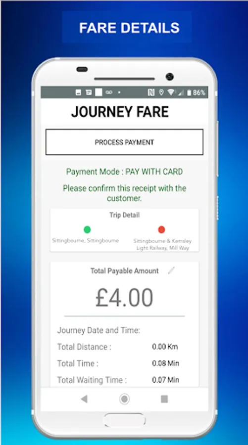 - Calculates the Fare automatically from your Tariff Card, or enter from a TaxiMeter