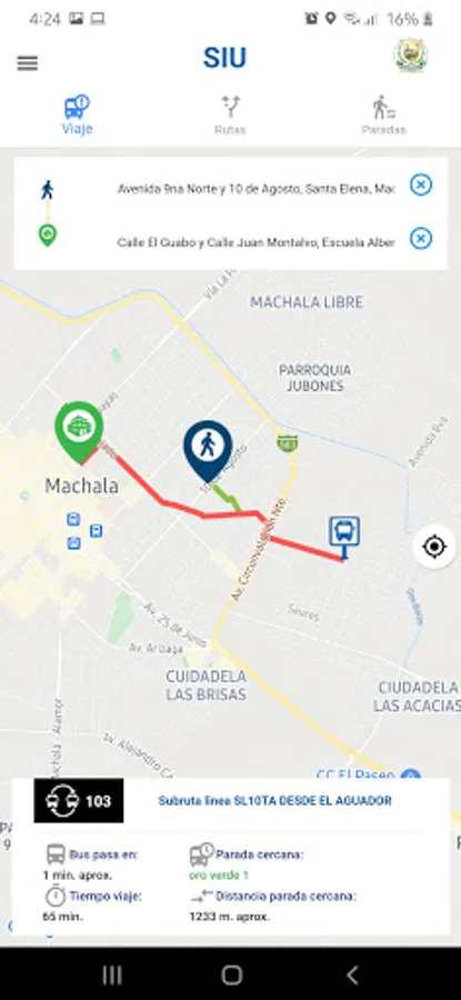 Welcome to SIU ciudad de Machala, an application where you can view the public transport routes in the city of Machala, in addition to obtaining the real-time location of each of the buses that work on a specific route together with their respective information regarding schedules, in addition to being able to make complaints and / or comments about the Urban Transport service of the city of Machala.