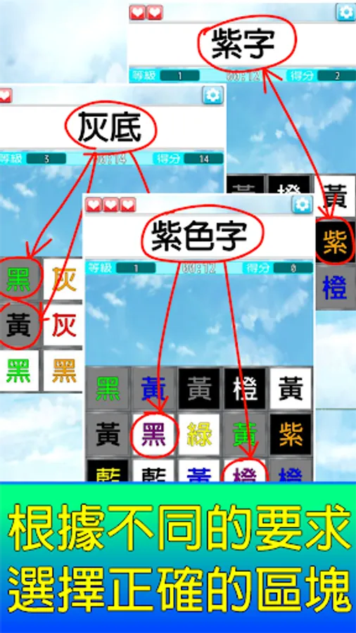 Move 3 identical color blocks from the main deck to the elimination area, and when 3 are collected, they can be eliminated