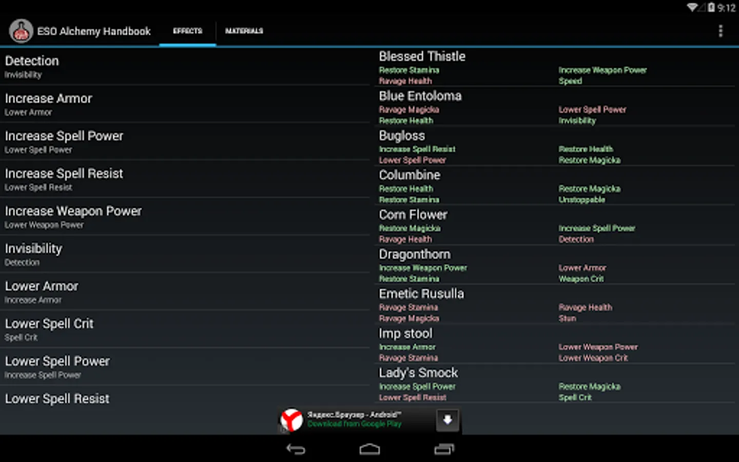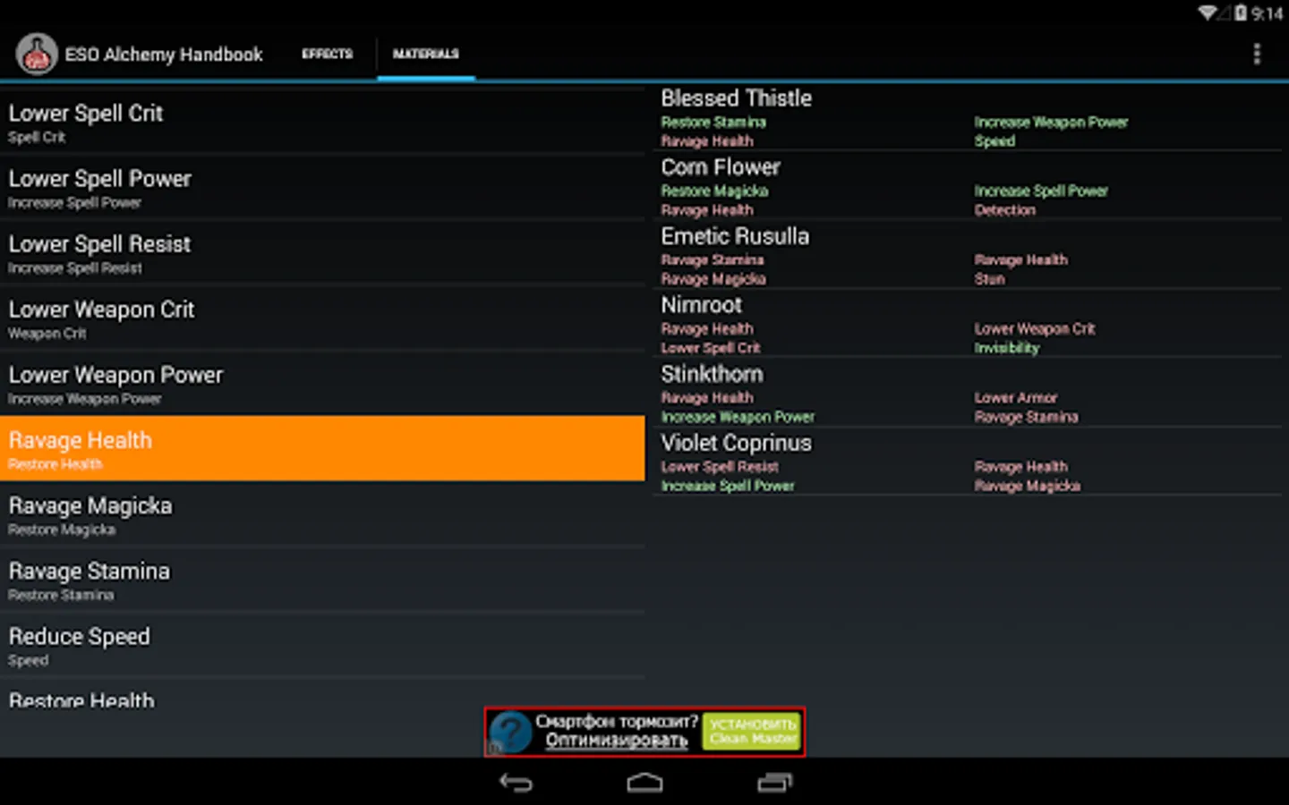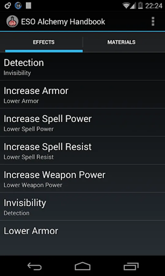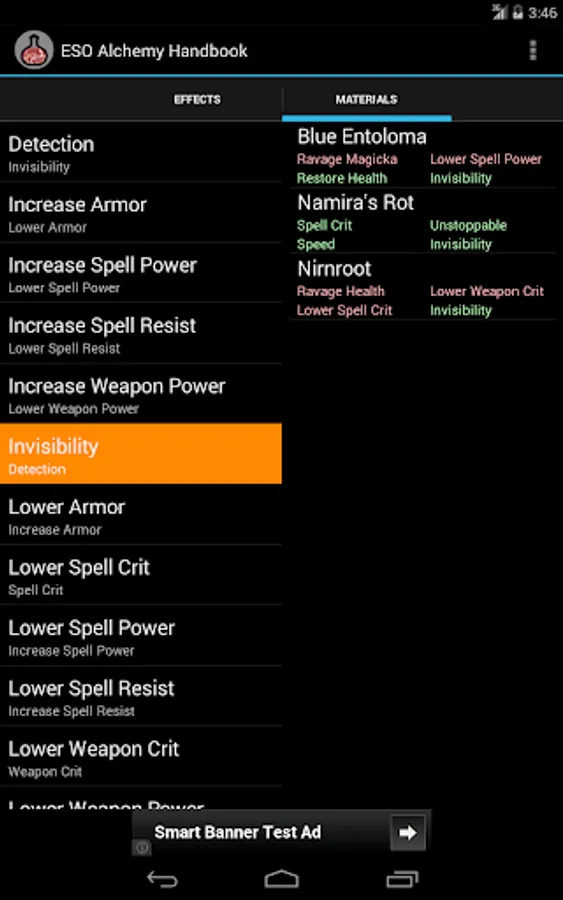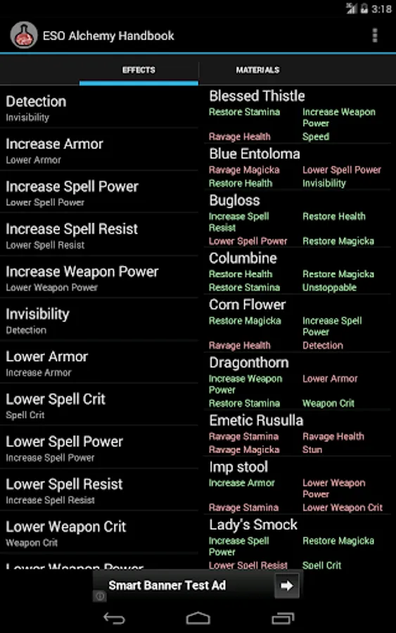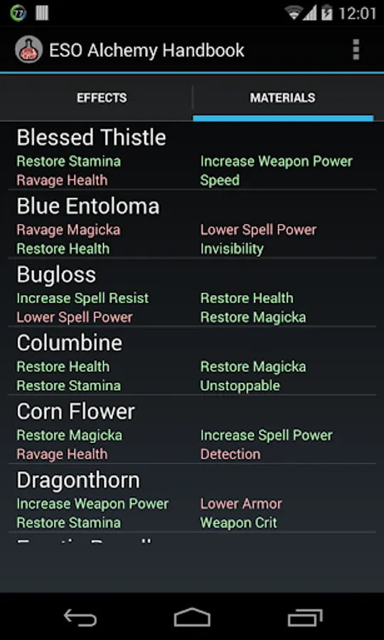 This app helps to select materials with desired effects for potion production in "The Elder Scrolls Online" MMORPG.