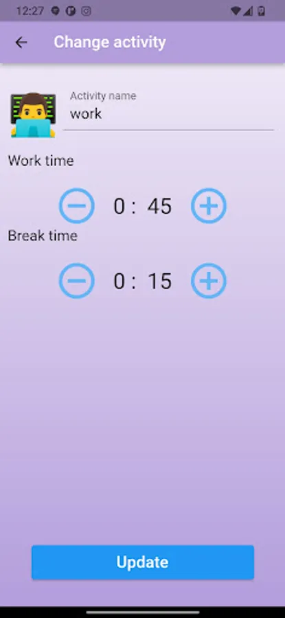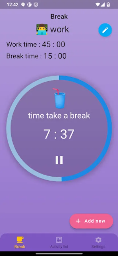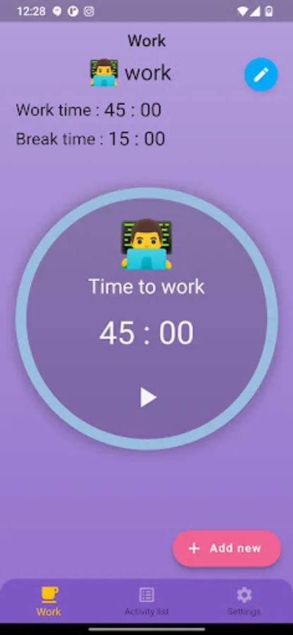 Set work time the application allows you to set the working and break times. it reminds you when it's time to take a break or work.