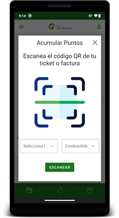 Las Salvias app is an application that makes it possible to make available to users of the eLoyalty platform, to be able to link their Card and to be able to accumulate Points for their Purchases by reading the purchase receipt QR and also to be able to Redeem or exchange their Points for more Products o Prizes available at Las Salvias Service Stations
