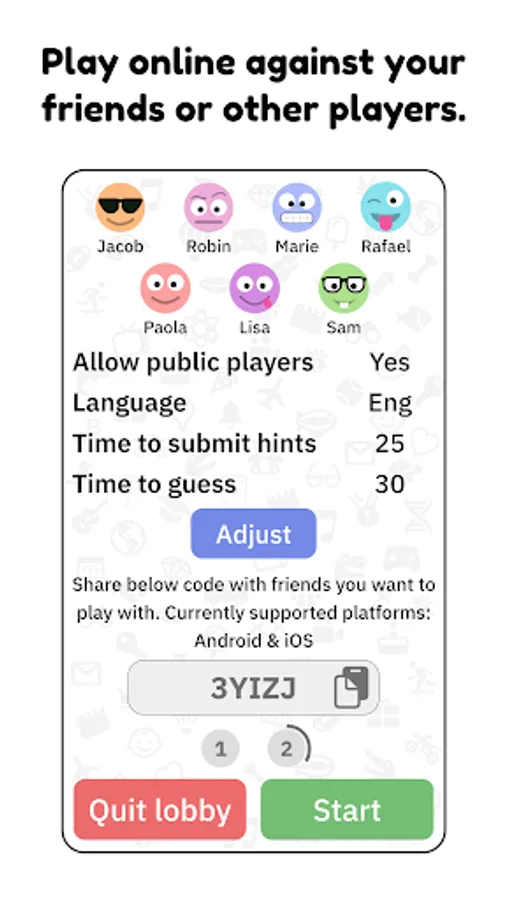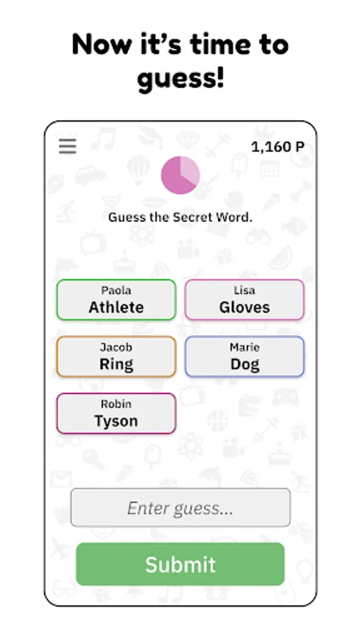 Guess What is loosely based on the concept of the world-famous board game "Just One". Enjoy the fun of a beloved word game classic in a whole new way!