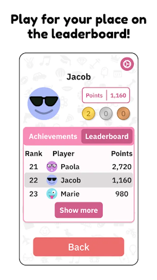 Compete with other users! Try to collect the most points of all players to climb to the top of the leaderboard!
