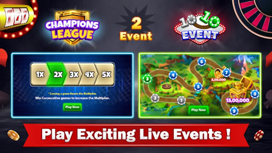 Tonk Online has made 2 types of Events Weekly and Daily event. Lucky Spin, Champion League and Event10-10 count in a Weekly Events. Tonk Master, Free Gold and Mini Game events include in Monthly events.