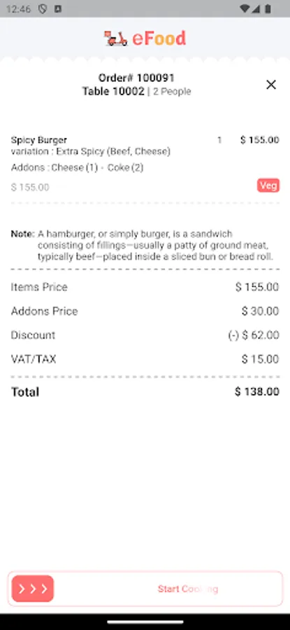 eFood Kitchen app is another important module of the eFood single restaurant food delivery project. This app is specially designed for Tablets though it is also supported on mobile phones. Using this app a restaurant can manage all types of orders in the kitchen for cooking and can provide updates about the status of an order from the kitchen.