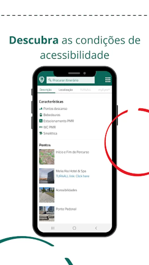 In this application you will find information about distances, types of floors, resting places, adapted sanitary facilities, car parks, etc.