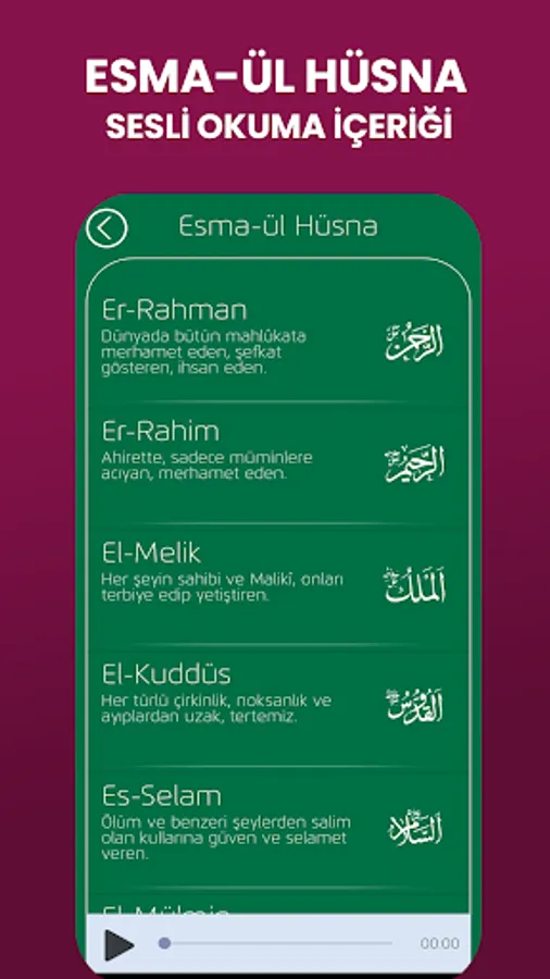 - Listen to the Quran with the voice of 12 hafiz thanks to the Holy Quran section, read the Quran with its translation thanks to the Turkish translations.