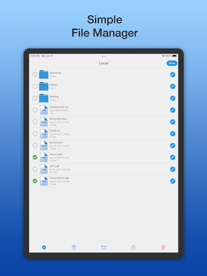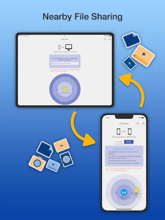 File Sync is the fastest and easiest way of transferring your files, documents, music, photos and videos to computer using the most advanced technology. With latest update File Sync now can store documents, audio or music files into the app and you can then view, play music, manage and share files to others.